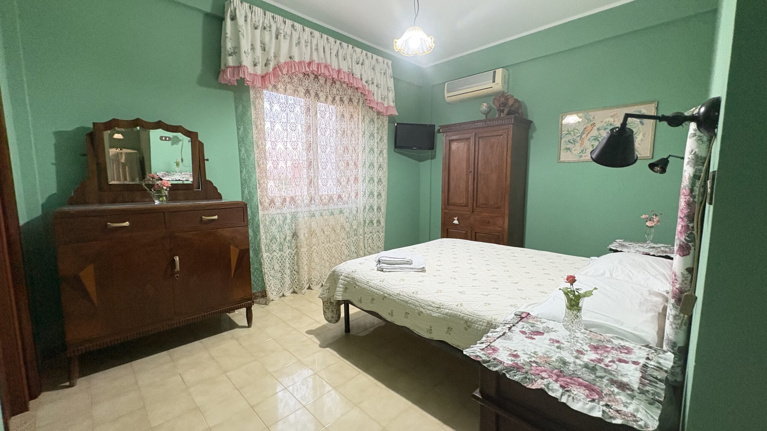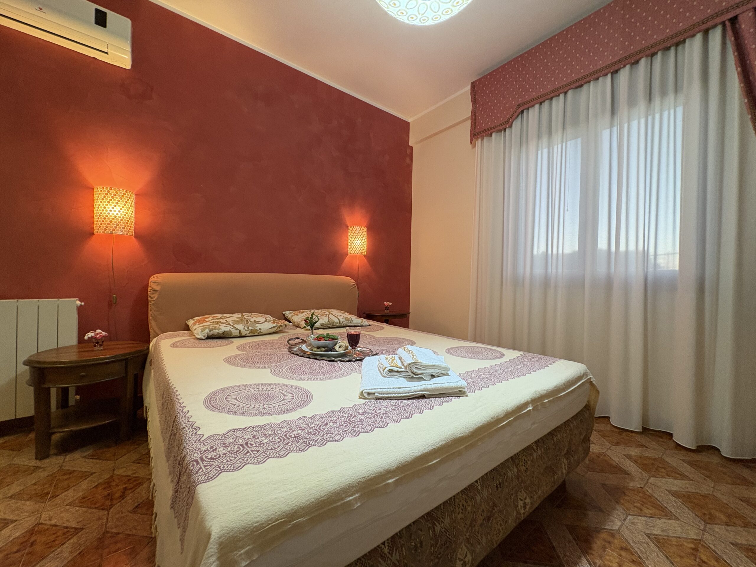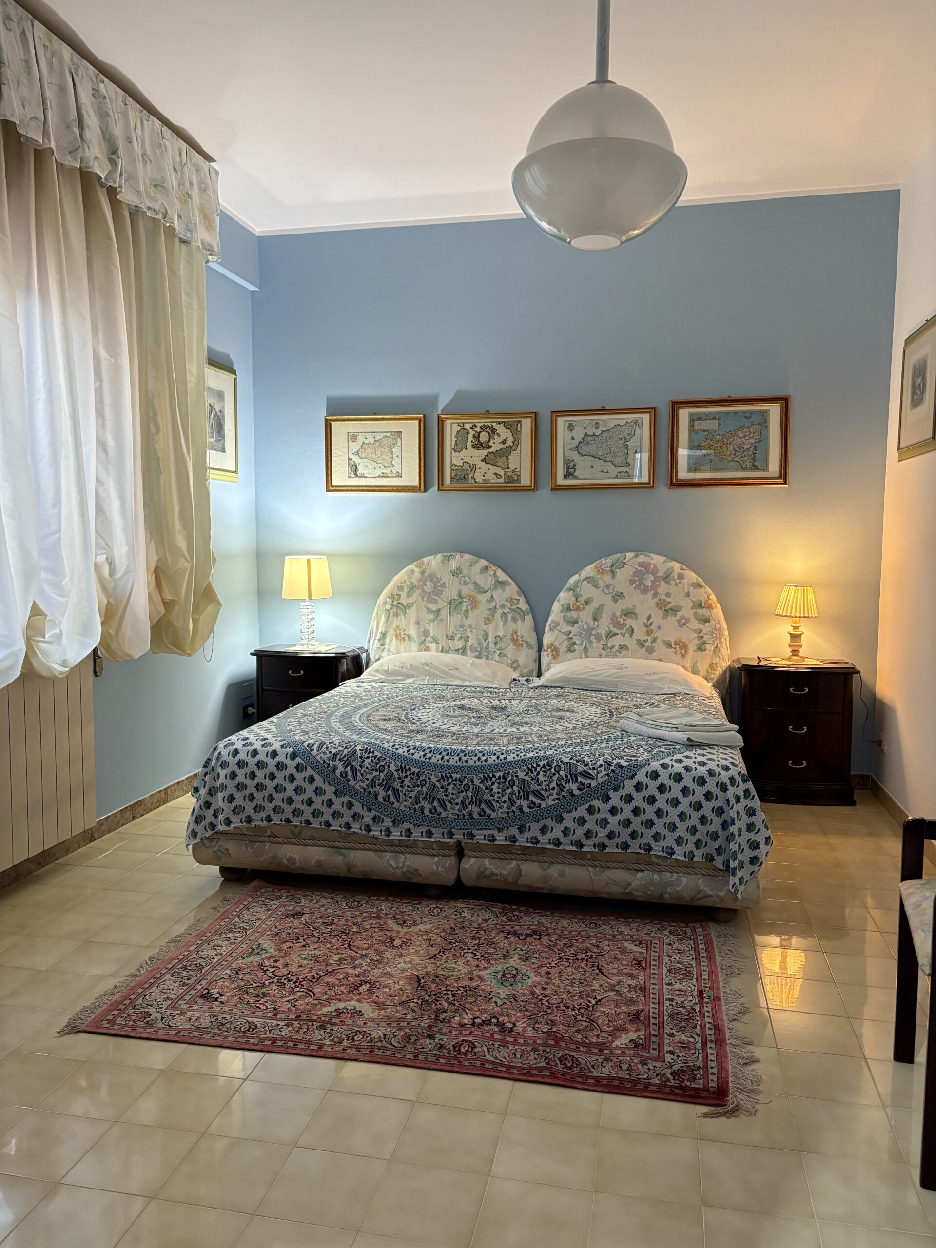 La Casa al Sole dispone di quattro camere da letto ampie e luminose. La cura negli arredi e per le tappezzerie rivela il gusto dei proprietari e l’appartenenza familiare a un’antica tradizione di maestranze dedite all’arte dell’arredo. Non meno affascinante la scelta di predisporre le camere ognuna con l’affaccio verso un punto cardinale diverso, con la precisa volontà di restituire alla casa una dimensione circolare e ricordare all’umanità che la abita la ricchezza di un luogo capace di raccontarci storie infinite e tutte diverse. La camera gialla che all’alba si illumina per prima, o quella blu, color del glicine che si affaccia sulla corte interna dove Vanda coltiva distese di peperoncino e pomodori in mezzo a palme da dattero e gigli della pioggia. Quella verde che troneggia sul parterre di spezie, capperi, fiori e frutti esotici curati da Vanda e Salvino. O ancora quella rossa da cui si scorge l’orizzonte e si sentono le campane delle cattedrali confondersi al muezzin delle moschee nel centro storico. Quando il vento è giusto, il canto languido di tutti i nostri dèi arriva fino a casa.